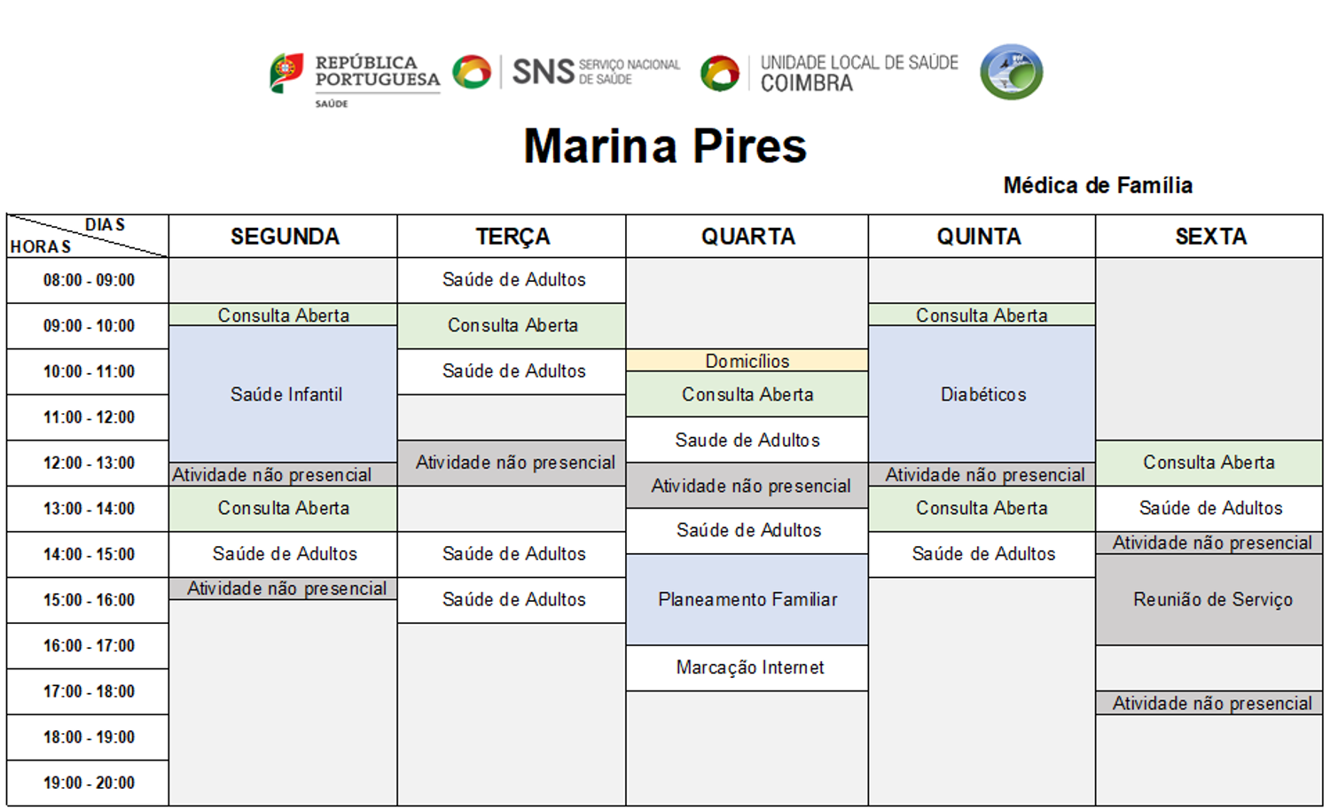 HORÁRIO (sujeito a alterações, segundo escala de serviço)